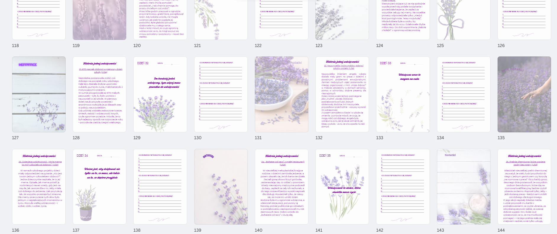 Odkryj, jak zmienia się Twoje życie, gdy każdego dnia zatrzymujesz się na chwilę, aby zauważyć dobro. Ten wyjątkowy, lawendowy dziennik powstał po to, aby pomóc Ci wprowadzić więcej spokoju, radości, wdzięczności i uważności do codzienności.